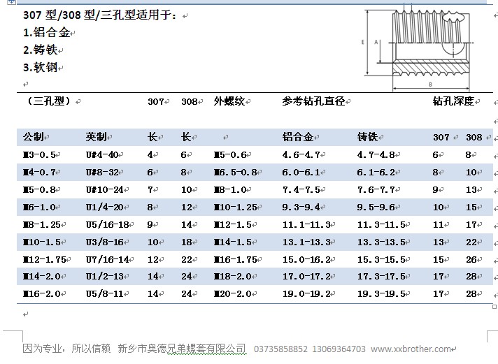 版权所有:新乡市奥德兄弟螺套有限公司 严禁转载或镜像,违者必究! Copyright 2026 超大尺寸钢丝螺套哪家好?磷青铜钢丝螺套报价是多少?锁紧型钢丝螺套质量怎么样?新乡市奥德兄弟螺套有限公司专门承接超大尺寸钢丝螺套,磷青铜钢丝螺套,锁紧型钢丝螺套,自攻螺套,插销螺套,超薄壁螺套等产品. 豫ICP备13023322号-5